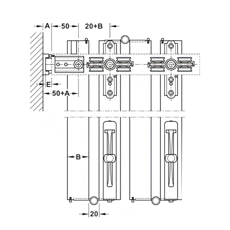 - Hệ treo trên ổn định cao:Giúp cửa vận hành cân bằng, giảm rung lắc và đảm bảo độ bền trong quá trình sử dụng lâu dài.