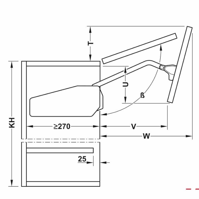 Bộ tay nâng FREE FOLD SHORT Hafele 493.05.741, xám