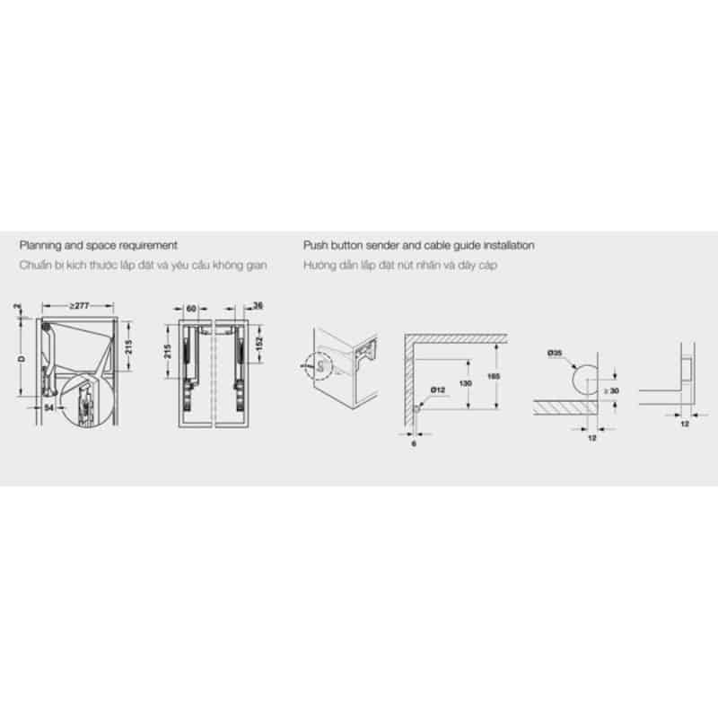 Bộ tay nâng FREE UP E Hafele 372.29.713 nắp xám