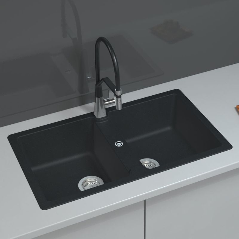 - Nhập khẩu nguyên chiếc từ Đức với cấu tạo 2 hộc rửa cân kích thước nhỏ gọn 360 x 430 mm, chất liệu đá nhân tạo granite với 75% thạch anh mô phỏng vẻ đẹp tự nhiên với màu đen/kem/xám hoàn thiện, hút trọn ánh nhìn.