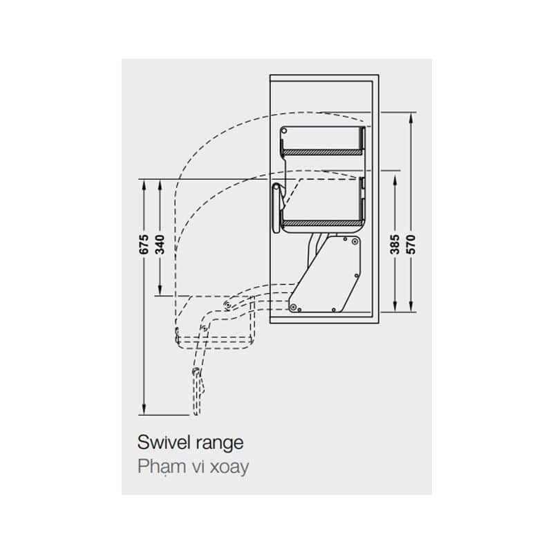Thông số kỹ thuật của kệ nâng hạ cho tủ bếp rộng 600mm, 2 khay, Hafele 504.68.923