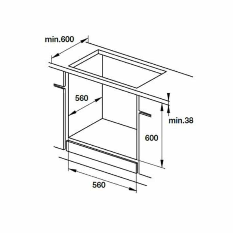 Kích thước lò nướng âm tủ Hafele HO-KT60A9 535.02.611