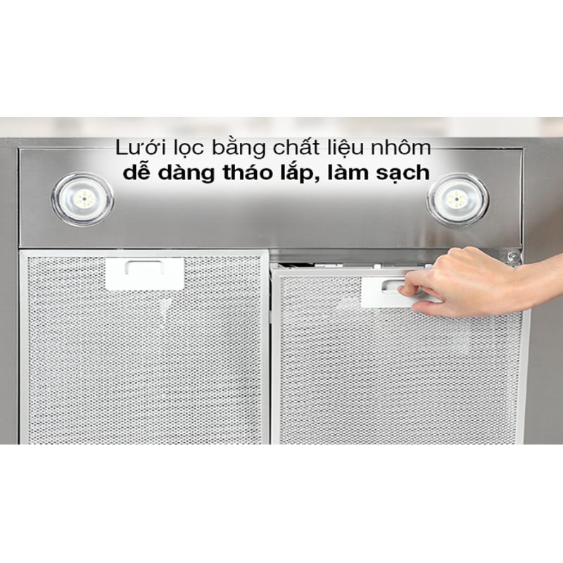 - Cấu tạo lưới lọc bằng nhôm có thể tháo rời cho hiệu quả bảo vệ tối ưu, giữ lại hầu hết mọi loại dầu mỡ, chất bẩn, khí thải… phát sinh trong quá trình nấu nướng, giúp động cơ và cánh quạt hút bên trong duy trì trạng thái hoạt động ổn định, năng suất.