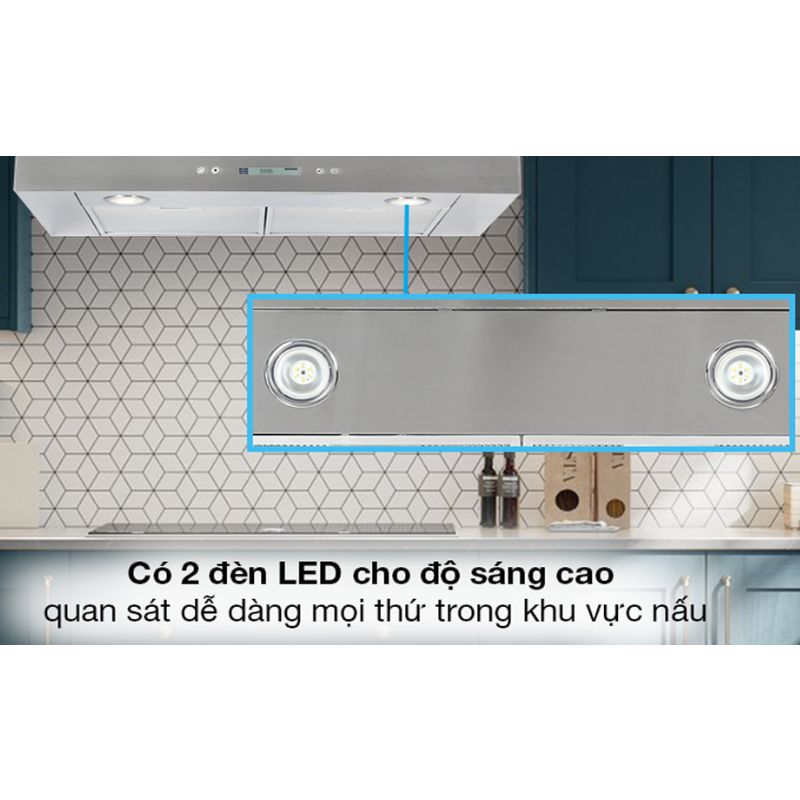 - Công suất hút mạnh đạt tối đa 900m3/h với động cơ turbin đôi siêu khỏe tích hợp 3 cấp độ hút cơ bản và 1 cấp độ hút tăng cường, giúp hút khử sạch mùi hôi, khí thải, bụi bẩn trong các không gian bếp nhỏ kín.