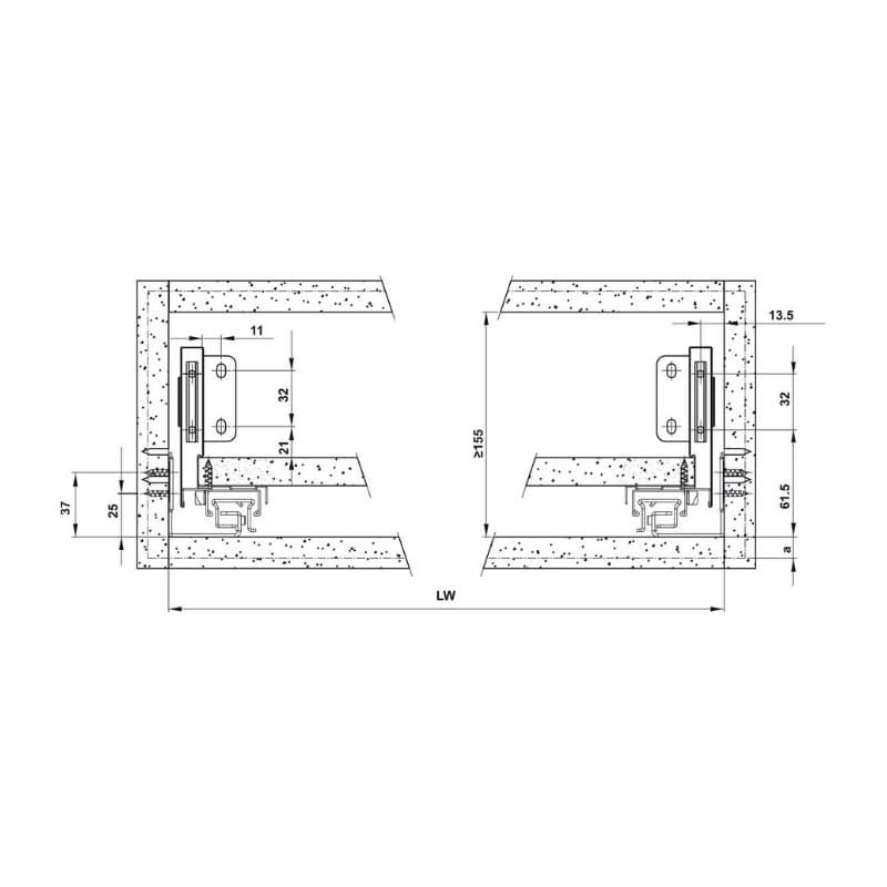 Thông số kĩ thuật của ray hộp Hafele Alto-S H120 mm chức năng nhấn mở màu trắng mờ 552.35.745