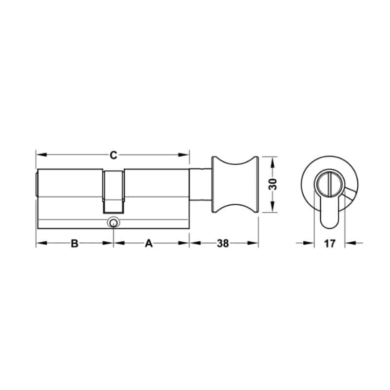 Ruột khóa cho cửa phòng vệ sinh Hafele 916.64.956, 101, mm Đồng thau
