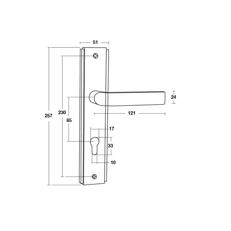 - Kích thước từ lỗ khóa tới tay nắm cửa 85mm