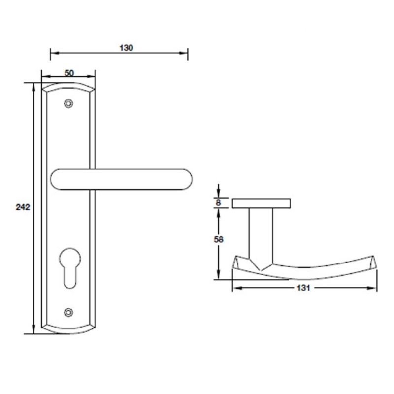Kích thước tay nắm 131 × 58 mm