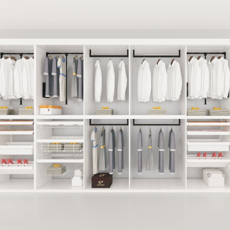 - Đảm bảo mọi vật dụng trong tầm tay : bộ sưu tập với vô số phụ kiện tủ quần áo Hafele, mang đến giải pháp cho mọi góc tủ quần áo và phụ kiện hiệu quả hơn. Khi mọi thứ được sắp xếp rõ ràng và gọn gàng, bạn cũng sẽ dễ dàng tìm thấy ý tưởng thời trang cho bản thân