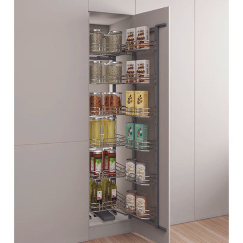 Đó là lý do Tủ kho Hafele Kara Swing 595.71.073ra đời như một giải pháp lưu trữ thông minh cho căn bếp hiện đại. Với thiết kế Swing (xoay kéo) và 12 rổ chứa khoa học, toàn bộ thực phẩm, đồ dùng đều hiện ra trước mắt bạn chỉ trong thao tác kéo nhẹ. Mỗi loại thực phẩm, đồ dùng đều có vị trí riêng, ngăn nắp và sạch sẽ.