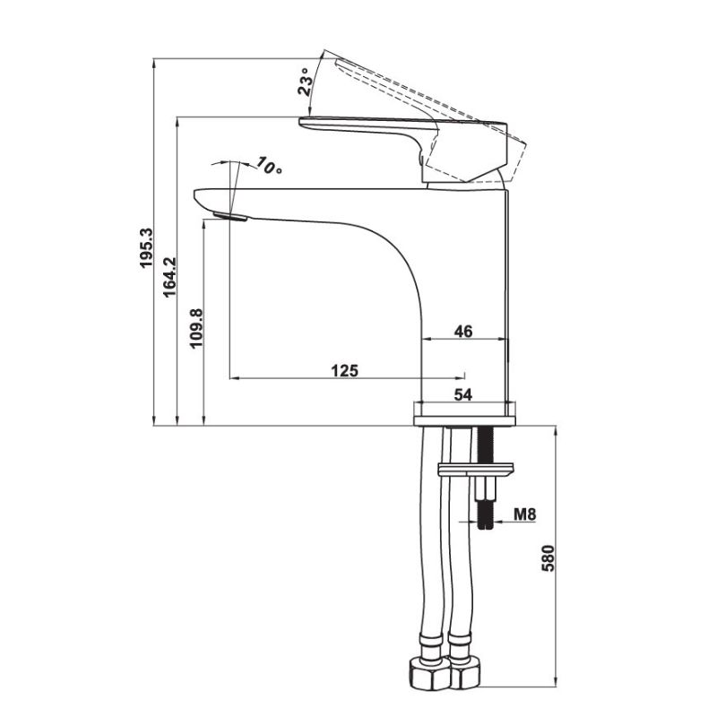 - Chiều cao từ đầu vòi đến mặt bàn: 109.8mm